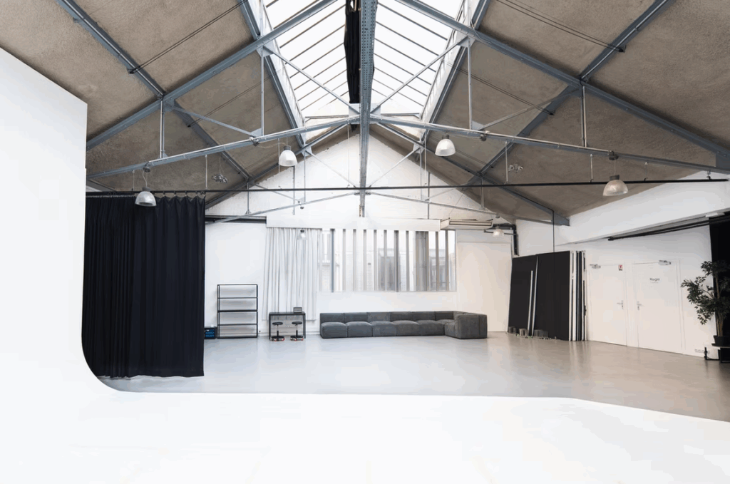 Le Studio propose sur 250m²: un cyclo 3 faces, un daylight (occultable) sous une verrière de 15 mètres, un make-up corner, une catering area ainsi qu’un terrasse en rooftop.